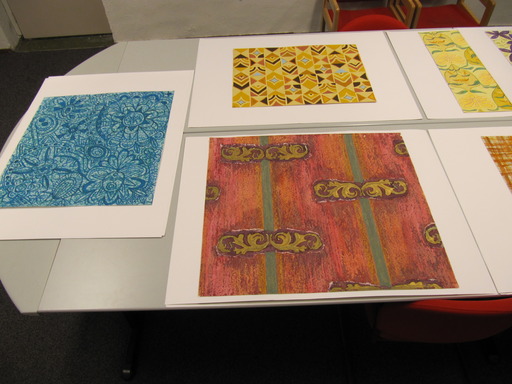 Dessinontwerpen op papier bruikbaar voor diverse doeleinden, waaronder ontwerpen voor inpakpapier, voor gordijnen, meubelbekleding en behang.
