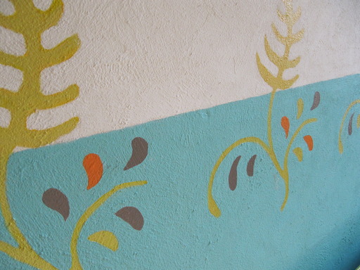 Dessin bladvorm voor een gangmuur. Inspiratie oude "countrystijl'. De rand repeteert en is onregelmatig van vorm en kleur.